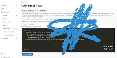 In Feathr, we call this piece of code the Super Pixel because of all the amazing things you can do with that newfound information. But Google also makes it easy with their Google Tag Manager, or in Facebook, it’s the Meta Pixel.