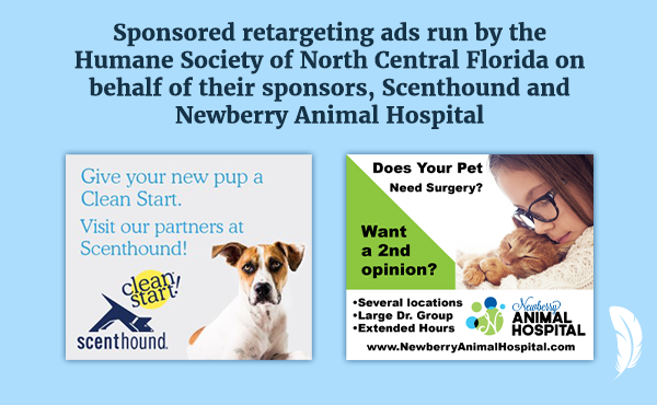 Examples of sponsored ads from the Humane Society of North Central Florida with their sponsor, FFP Law.